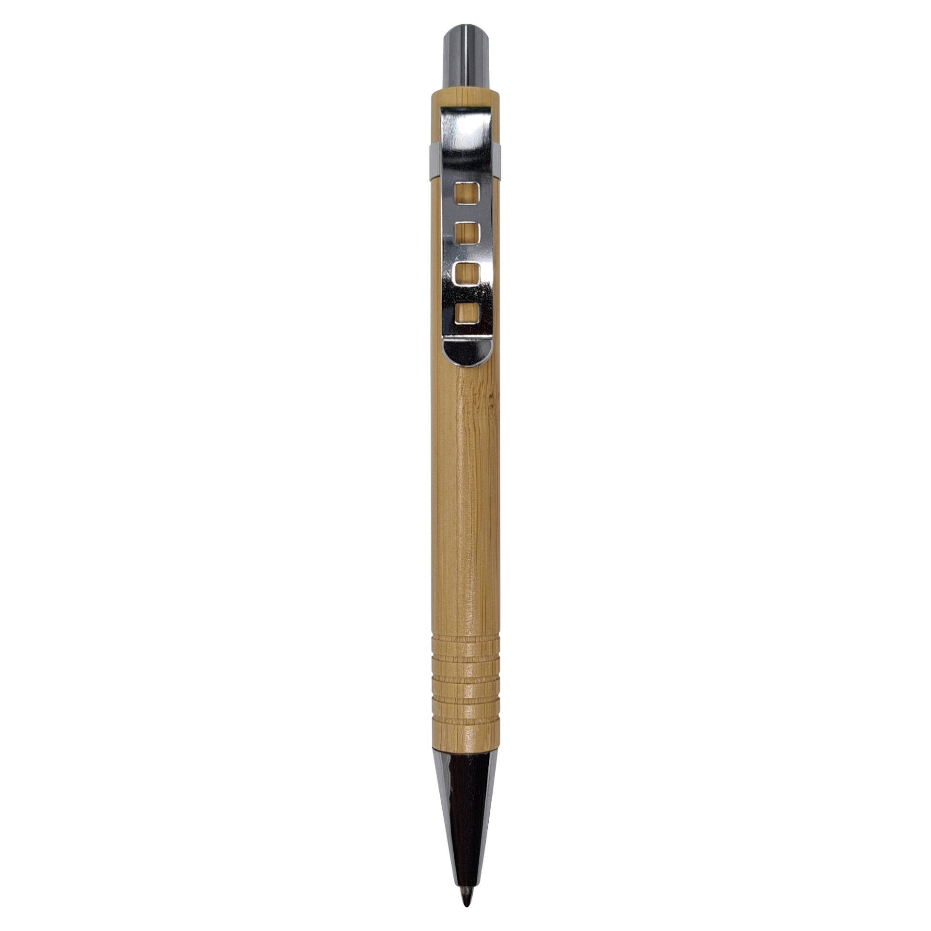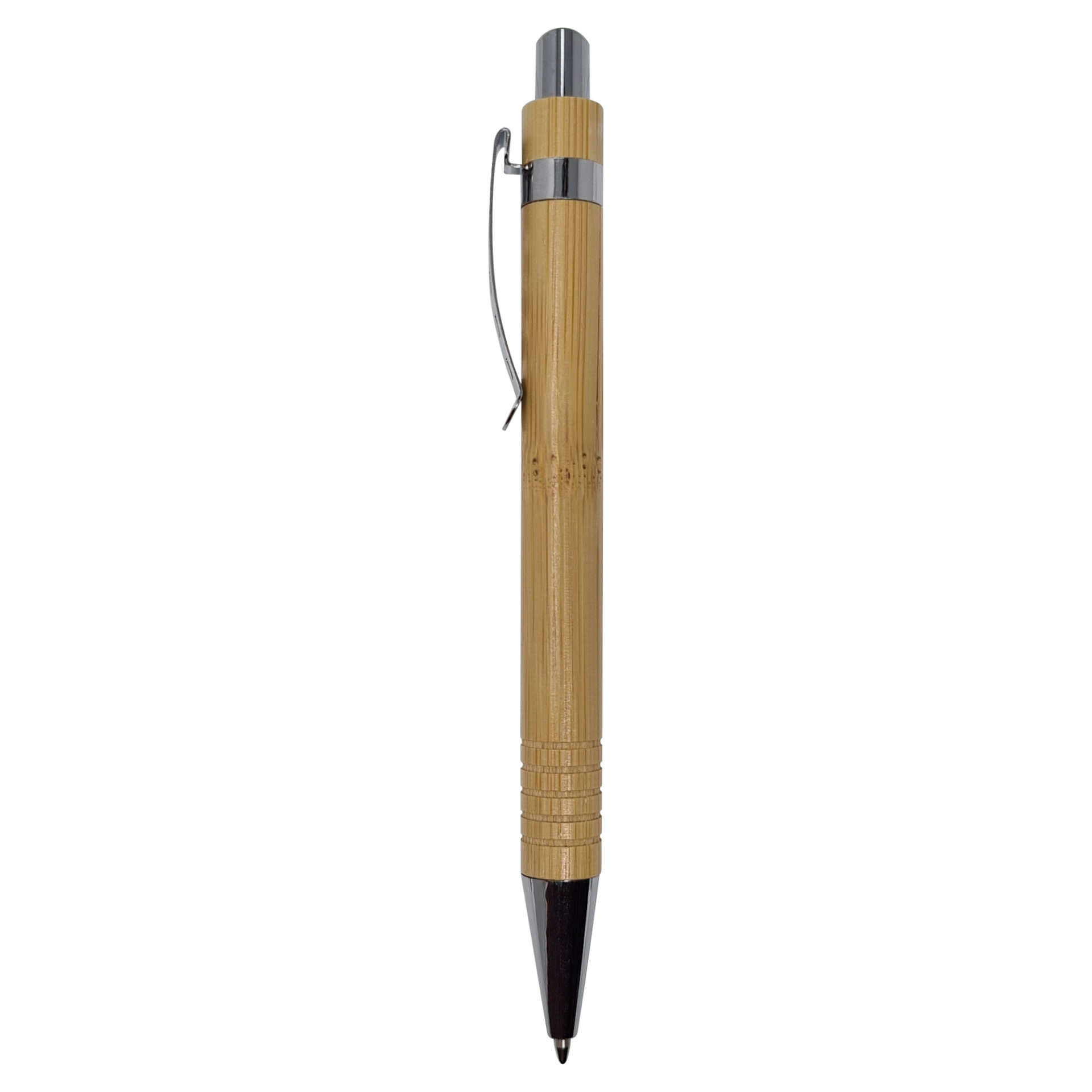 Bolígrafo exclusivo con cuerpo de bambú natural y clip troquelado en metal.