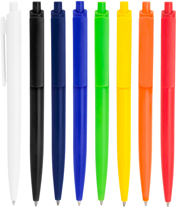Escribe con estilo y personalidad. Bolígrafo retráctil. Cuerpo de diferentes colores. Acabado mate. Pulsador, clip y puntera del mismo color del cuerpo. Amplia área de impresión.Medidas: 1 x 14 cm.