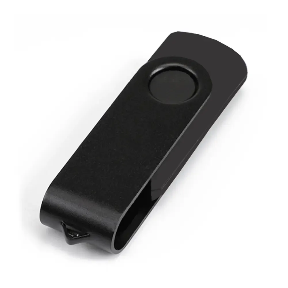 Pen Drive giratorio de 4GB: compacto y elegante con cuerpo negro y tapa negra. USB 2.0 confiable y memoria Grado A de marcas líderes. Ideal para transportar y proteger tus datos esenciales con estilo y seguridad.